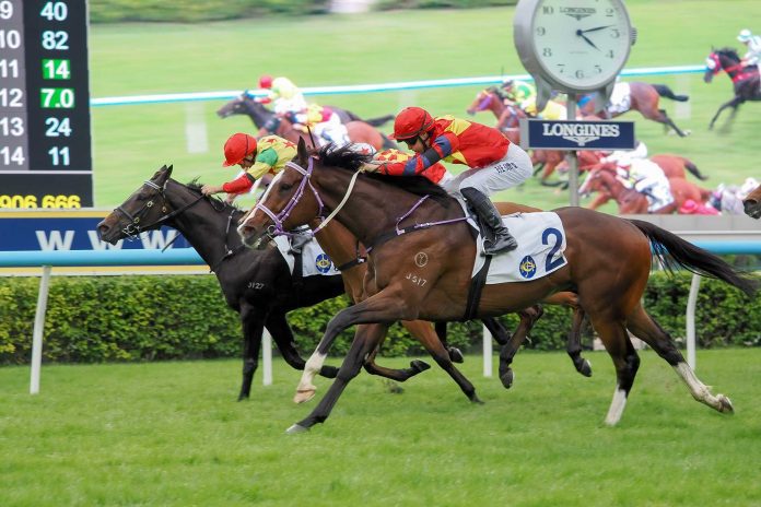 Returning to top form in emphatic fashion, Hong Lok Golf continued Harry Bentley’s bountiful string of lucrative wins this season with success in the HK$3.12 million Class 2 Handicap (1600m) at Sha Tin on Sunday (30 November).